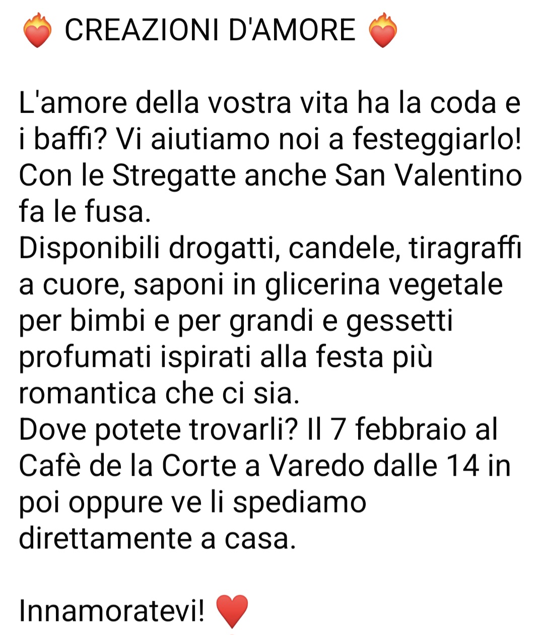 Domenica 21 vi aspettiamo al Matilda di Nova Milanese in via Locatelli 36/b. Ci saranno tanti espositori per i vostri ultimi acquisti di Natale e ci saremo noi con i nostri manufatti. Vi ricordiamo che con i vostri acquisti contribuirete a sfamare e curare i 100 gatti di colonia di cui ci occupiamo quotidianamente. Saremo felici di incontrarvi per fare due chiacchiere e scambiarci gli auguri di Natale