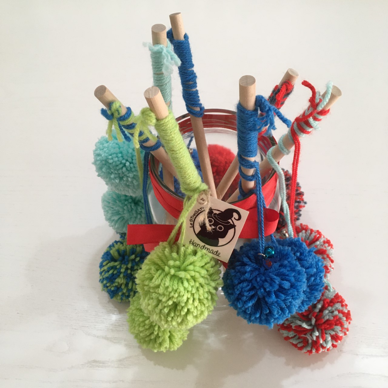 Divertenti e colorati pompon in lana sintetica per simulare la caccia e far divertire il vostro micio.