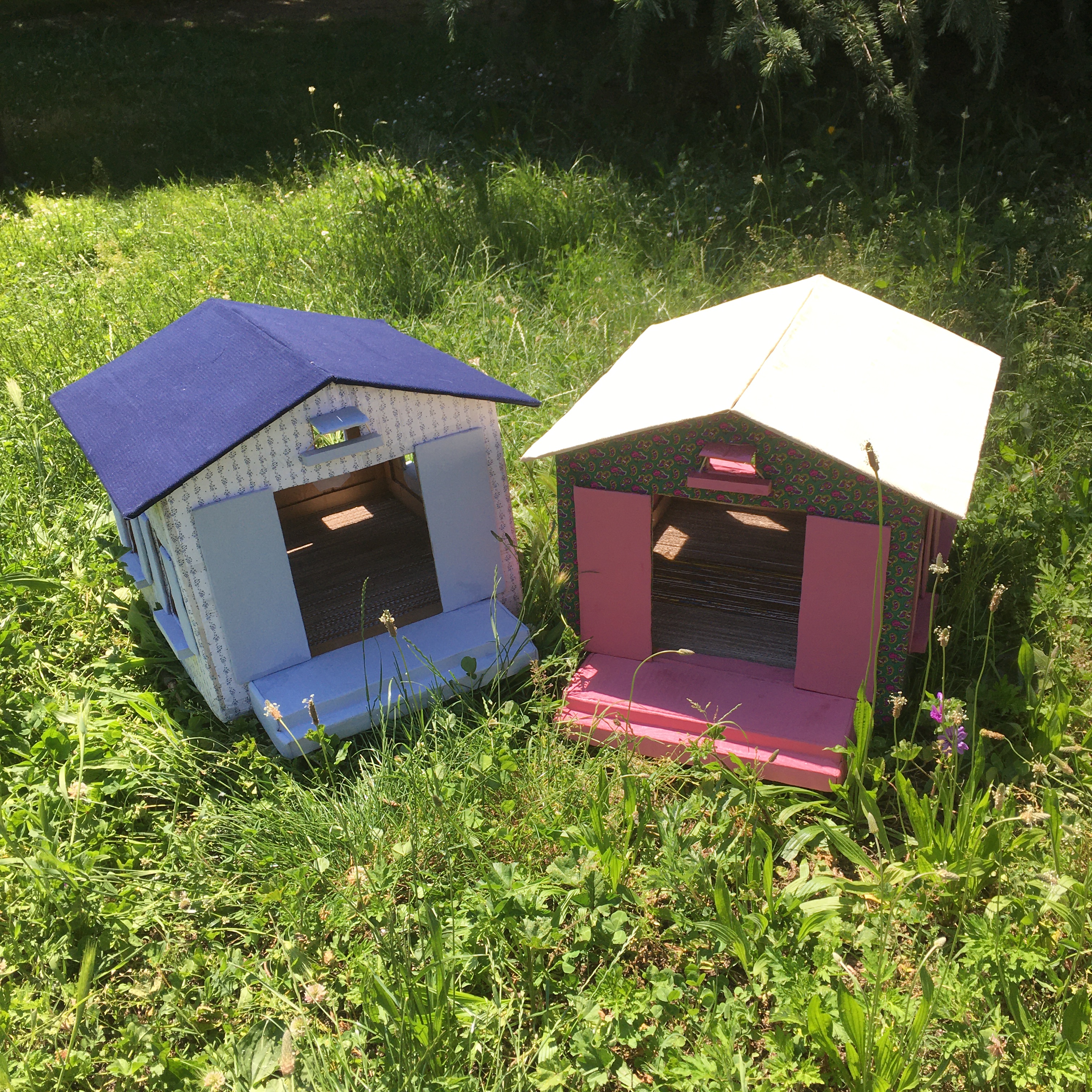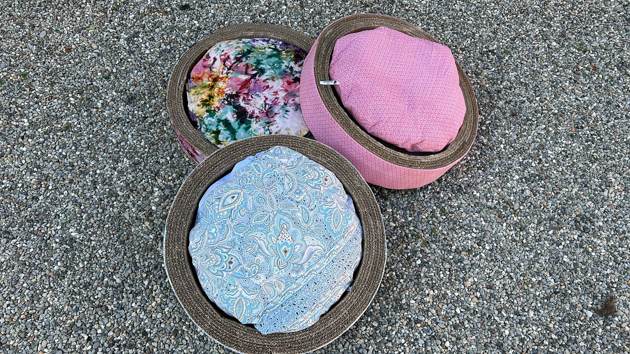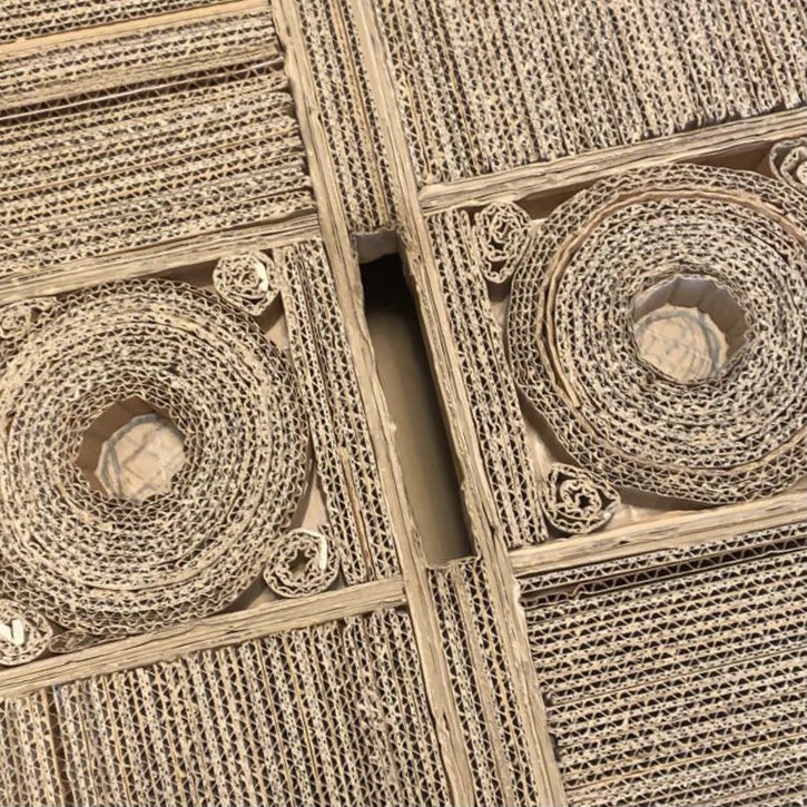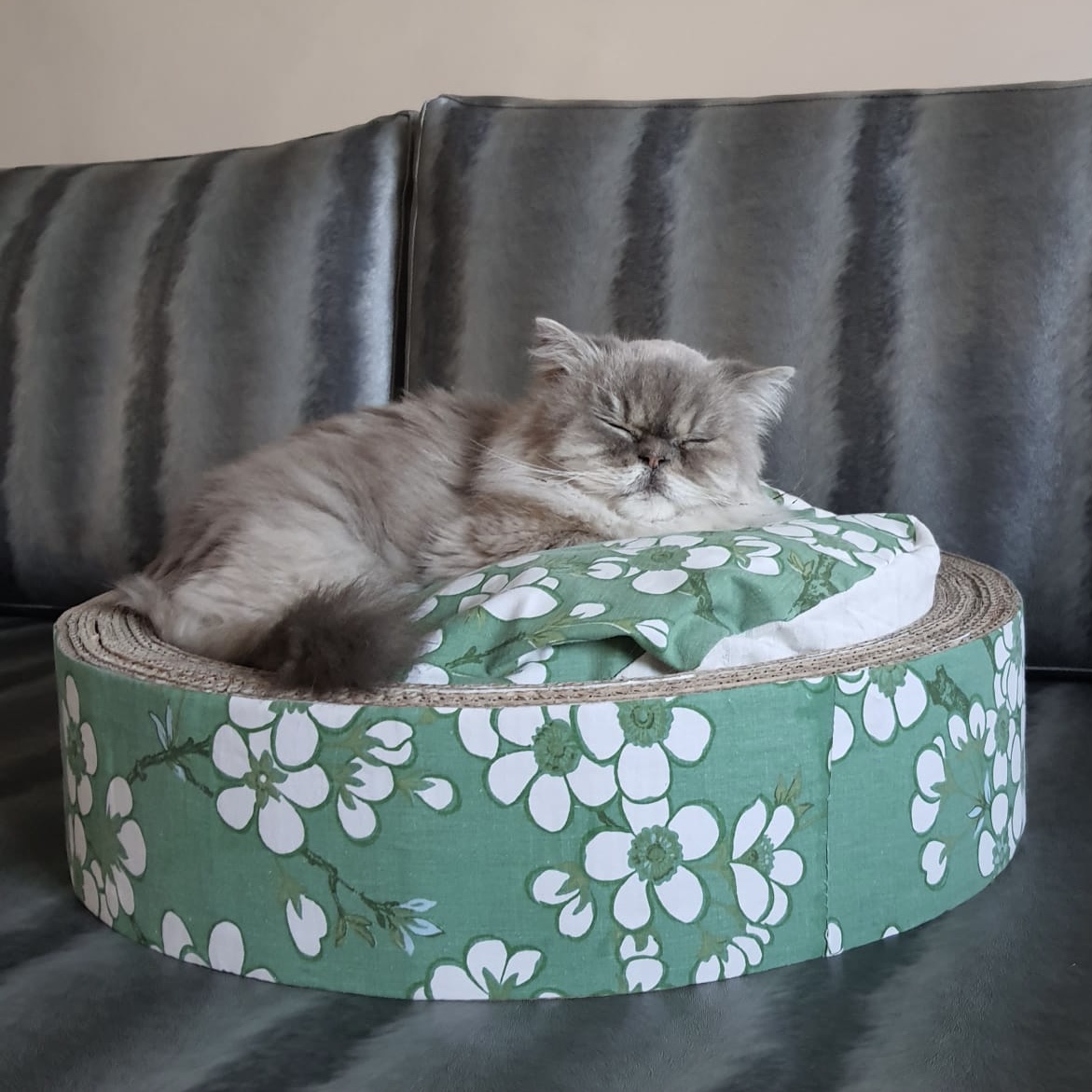 Ottimizza lo spazio con questa cuccia\tiragraffi completa di morbido cuscino. Fatta completamente a mano con cartone riciclato, rivestita di tessuto, è personalizzabile in colori e misure. Un comodo giaciglio e un apprezzatissimo e utilissimo tiragraffi.
