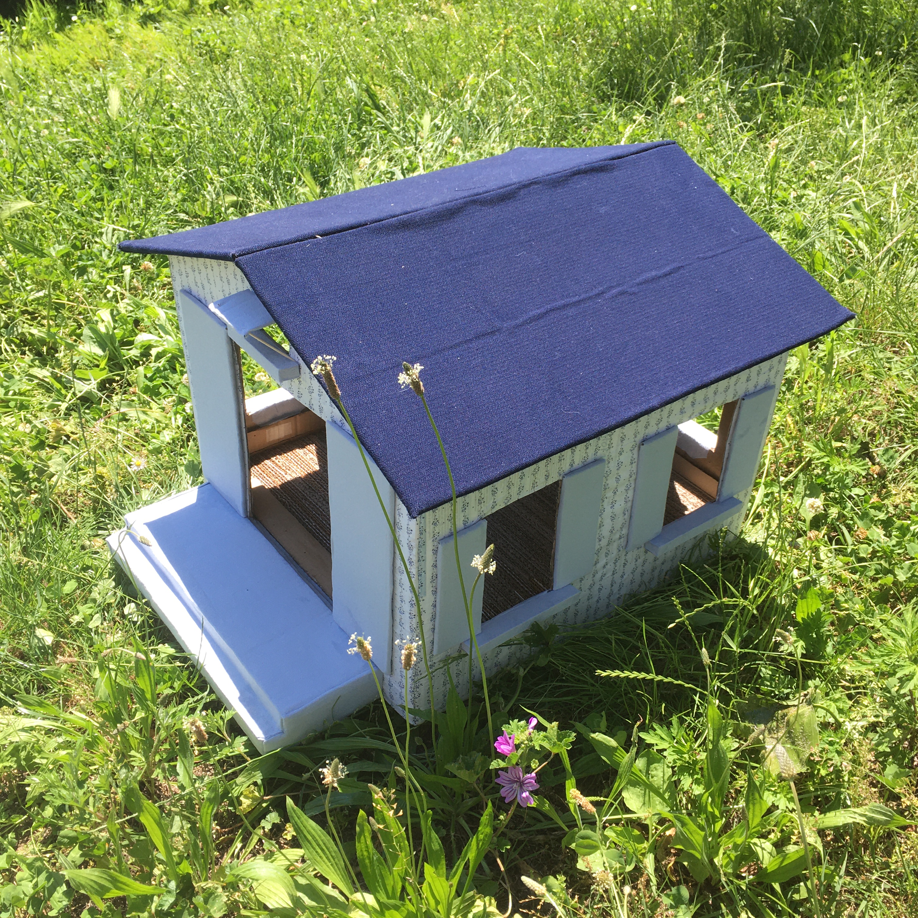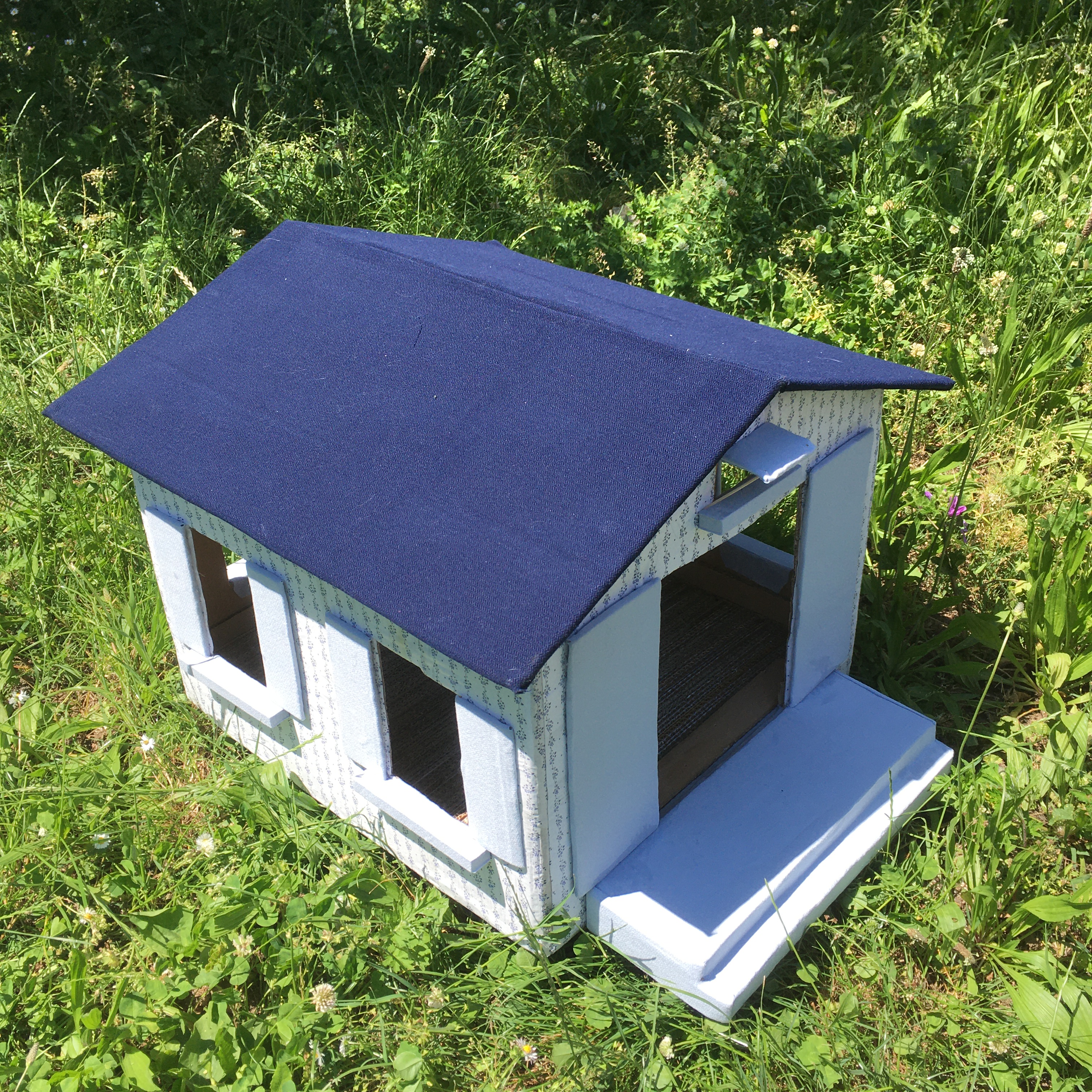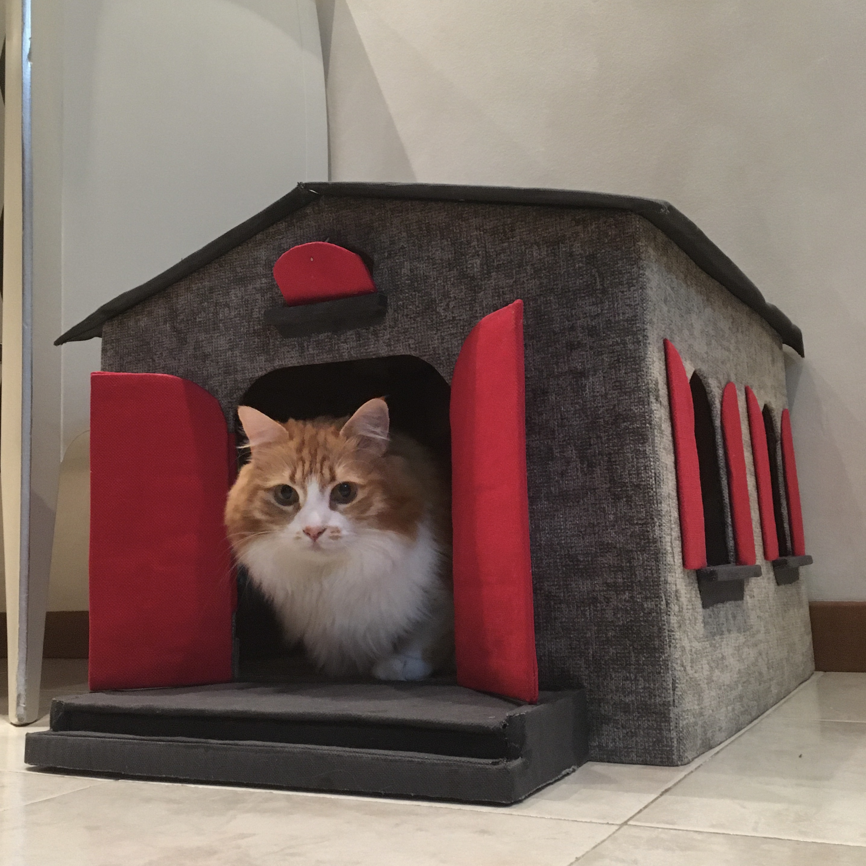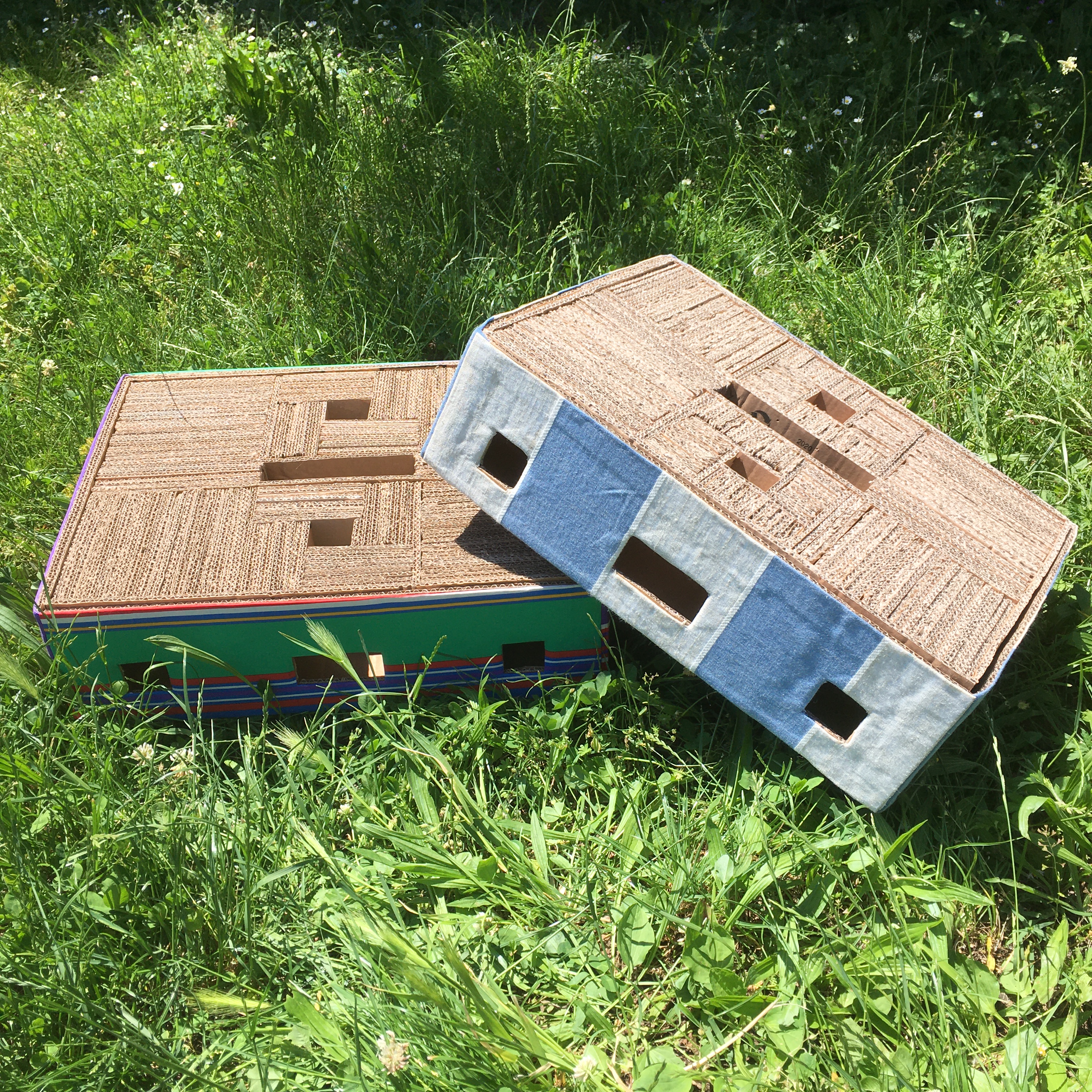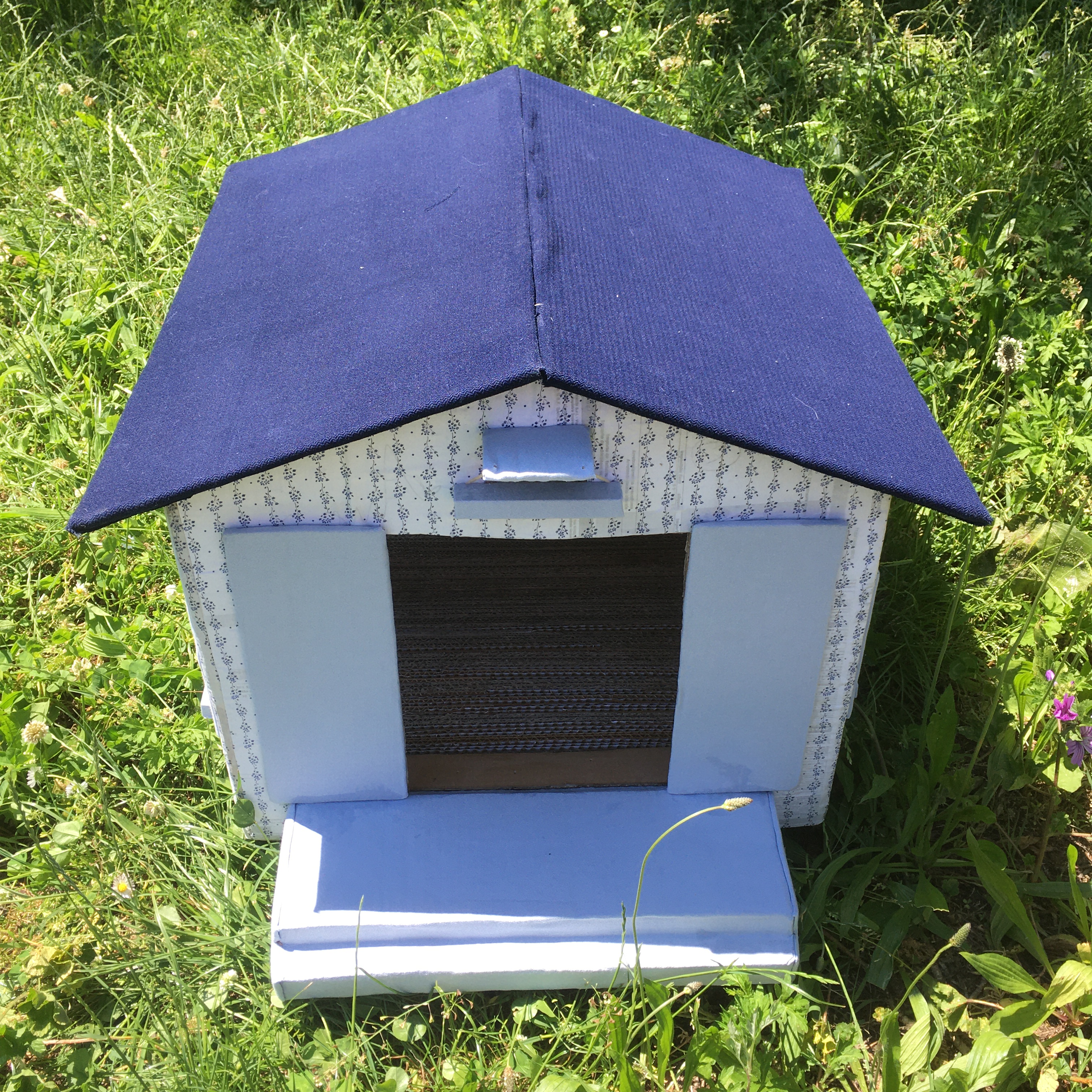 Ottimizza lo spazio con questa cuccia\tiragraffi completa di morbido cuscino. Fatta completamente a mano con cartone riciclato, rivestita di tessuto, è personalizzabile in colori e misure. Un comodo giaciglio e un apprezzatissimo e utilissimo tiragraffi.