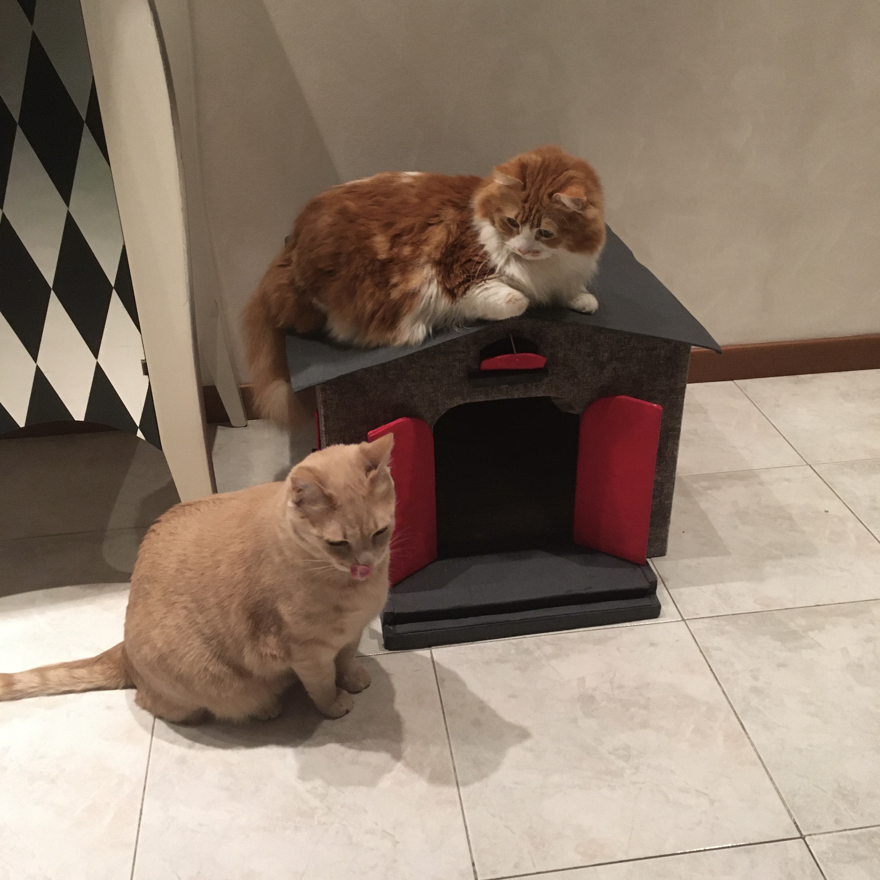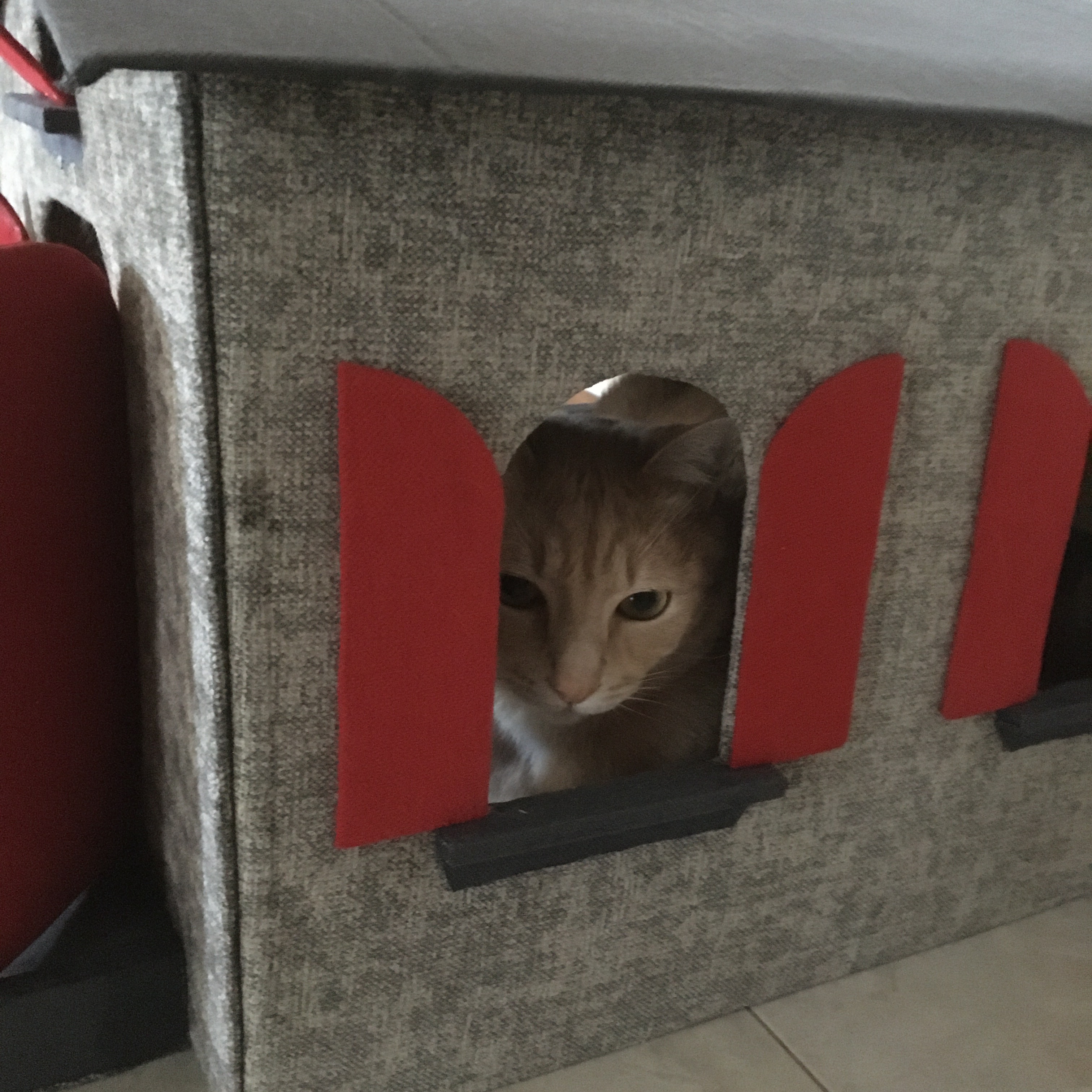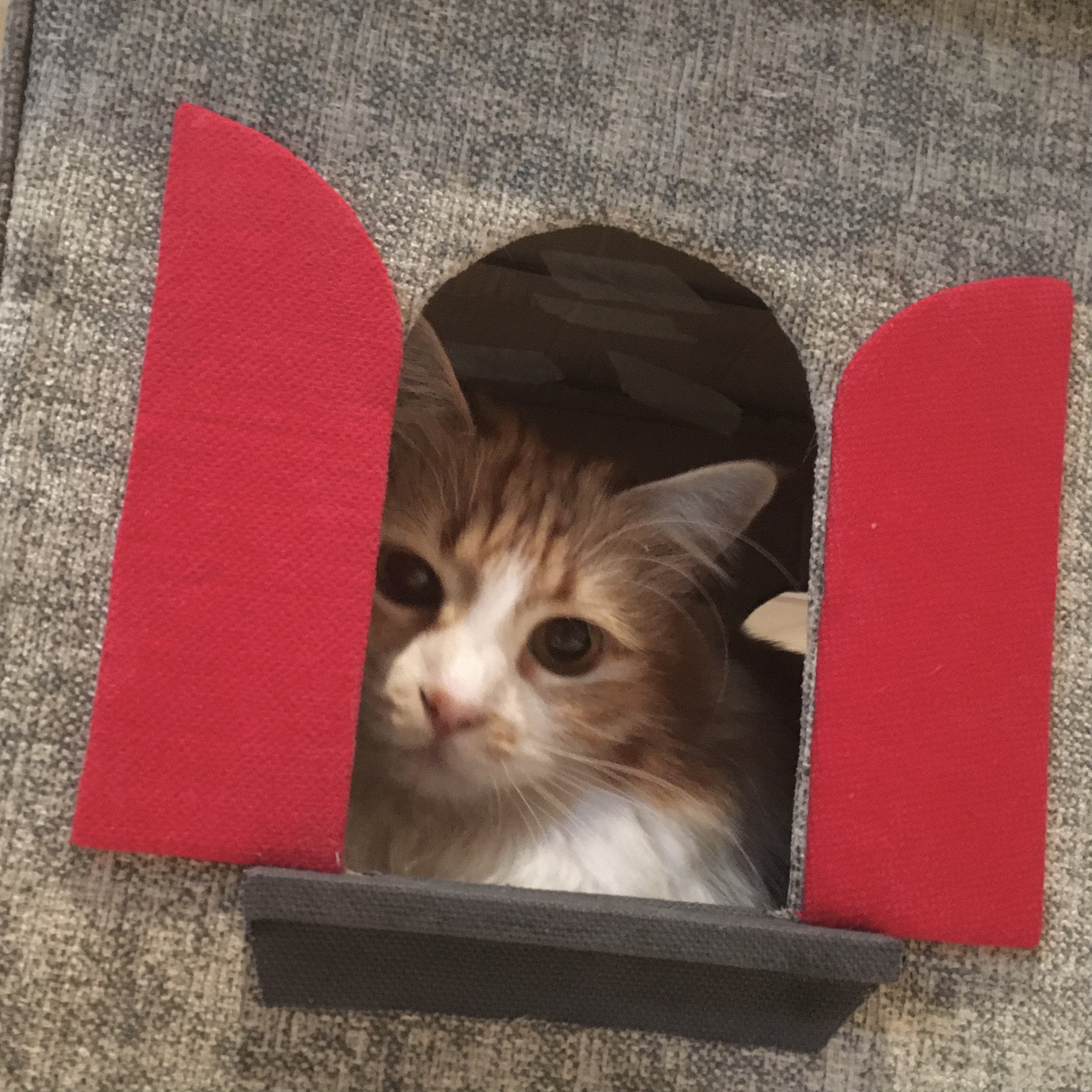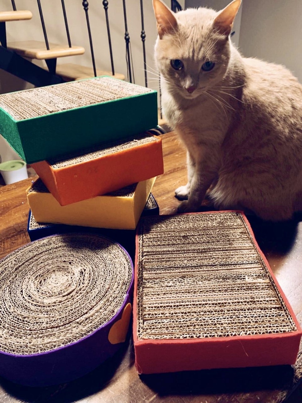 Ottimizza lo spazio con questa cuccia\tiragraffi completa di morbido cuscino. Fatta completamente a mano con cartone riciclato, rivestita di tessuto, è personalizzabile in colori e misure. Un comodo giaciglio e un apprezzatissimo e utilissimo tiragraffi.