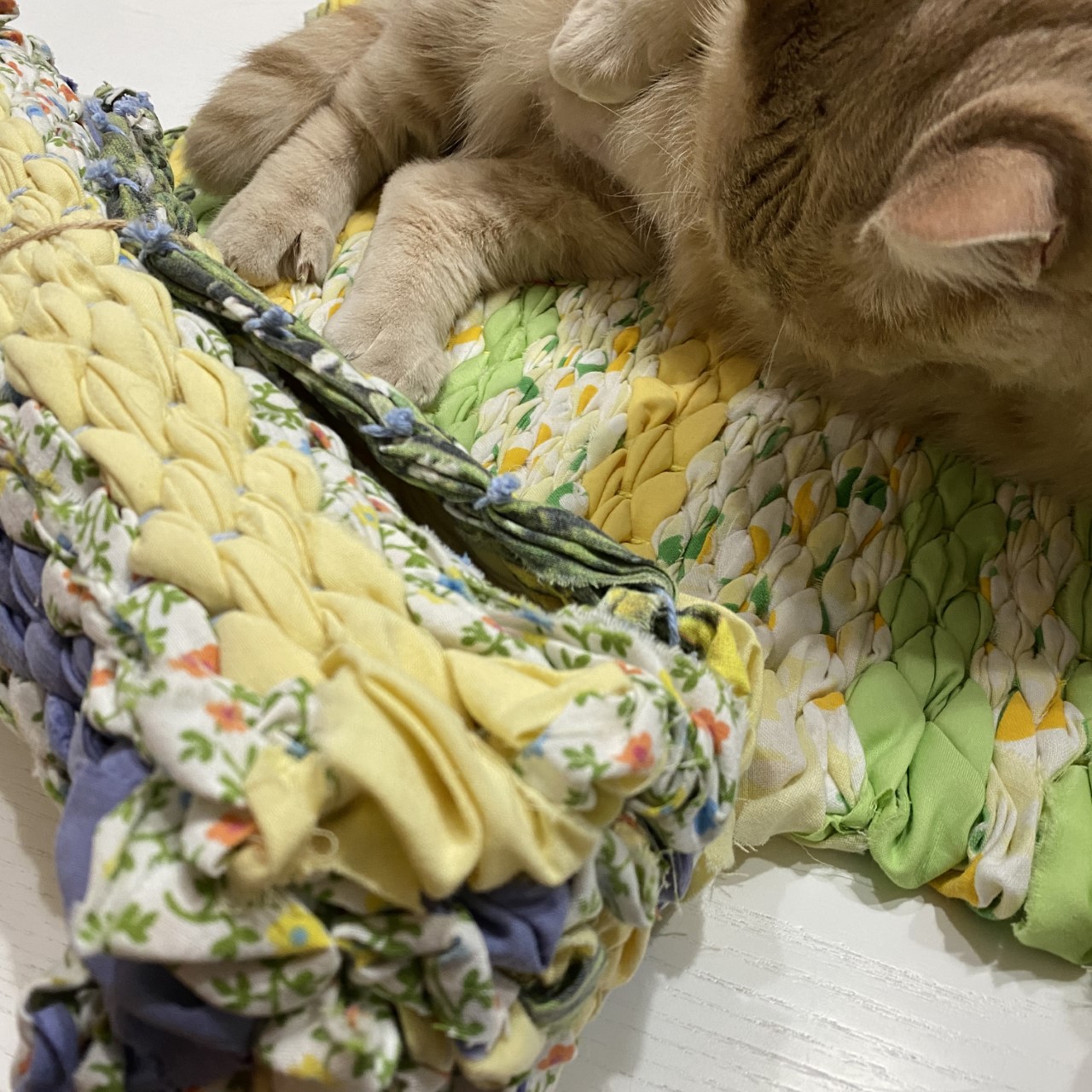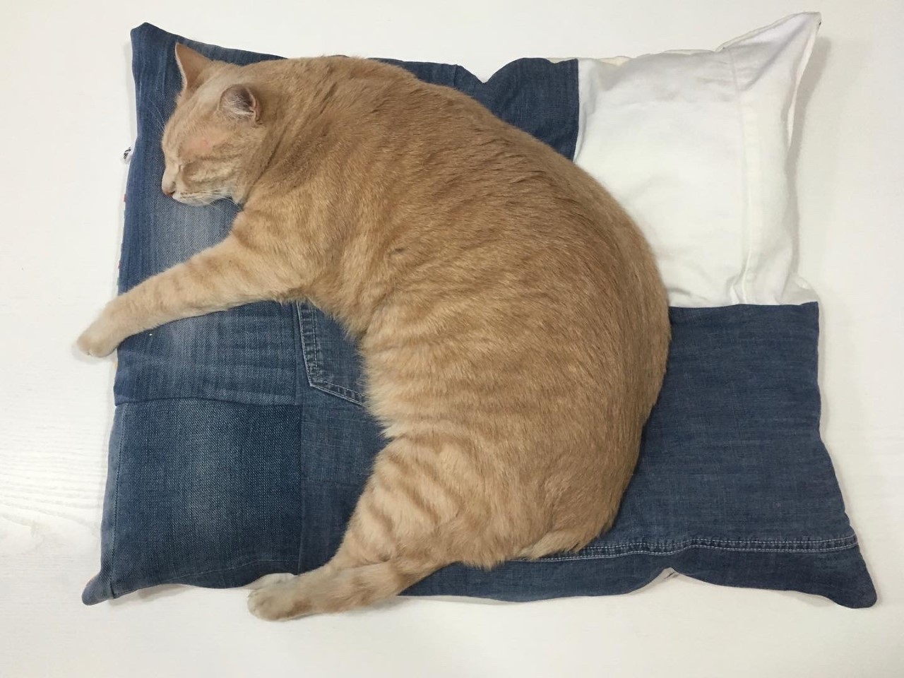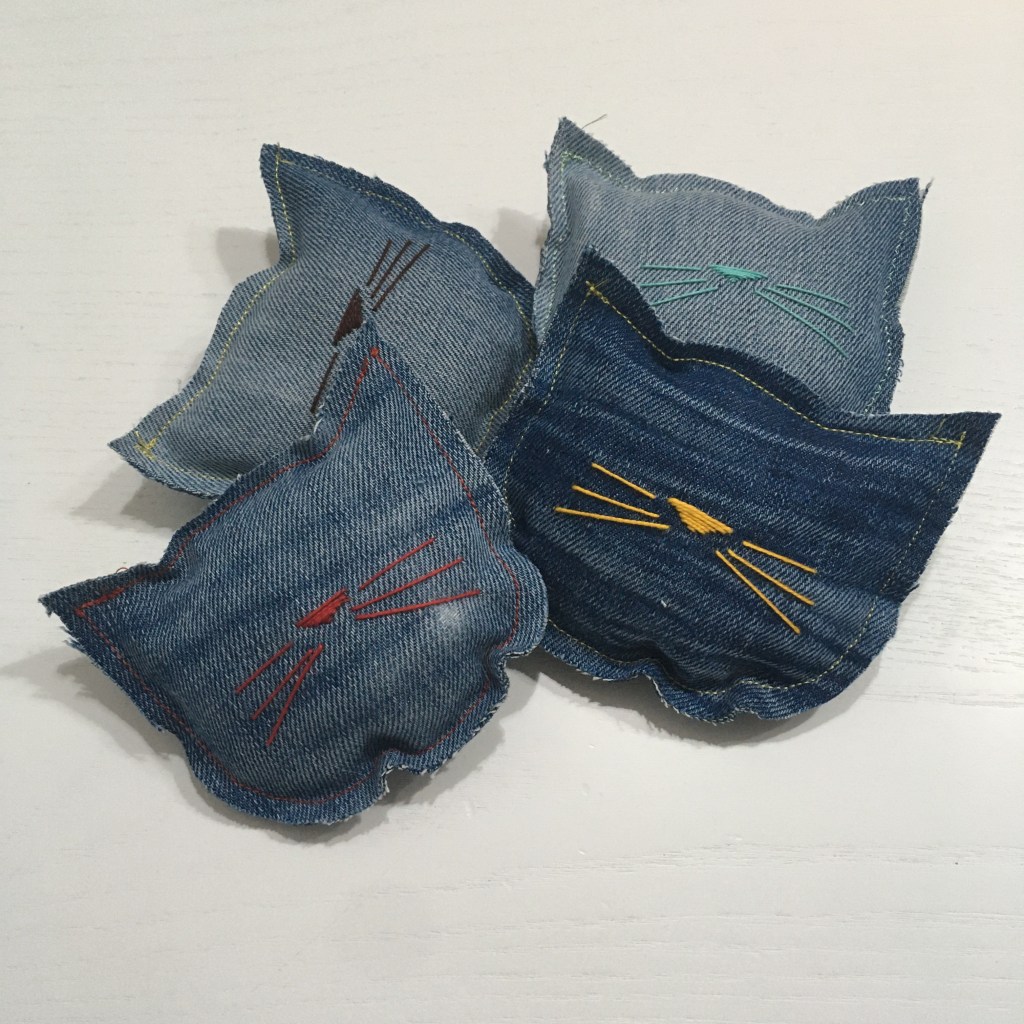 In patchwork di jeans double-face, con spessa e morbida imbottitura che protegge il vostro micio dalle superfici dure e fredde.