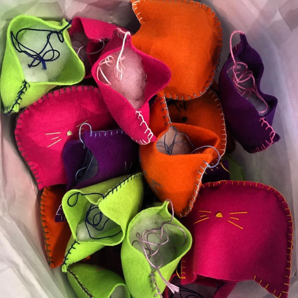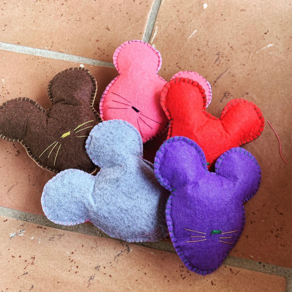 Gioco per gatti in feltro cucito a mano, ripieno di erbagatta Catnip.