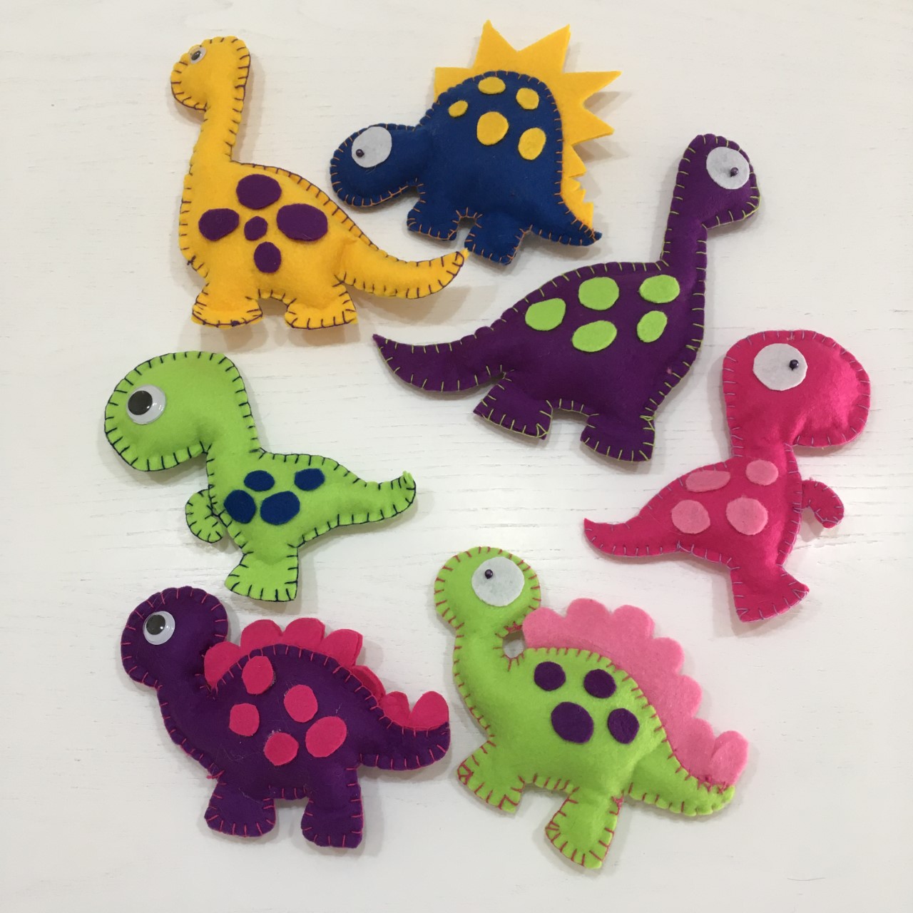 Nascono così i simpatici dinosauri realizzati a mano in feltro colorato. Disponibili come calamite o semplici pupazzi per piccoli appassionati di paleontologia e creature preistoriche!