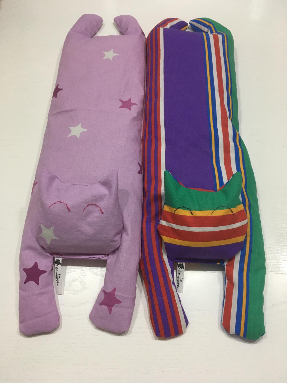 Miciotti, Cagnetti, Pesciotti vi accompagneranno nei freddi inverni ma anche nelle calde estati. Ripieni di lolla di riso che trattiene naturalmente il caldo e il freddo, scaldati nel microonde oppure raffreddati in freezer. Con aggiunta di fiori di lavanda che ha proprietà rilassanti e lenitive.